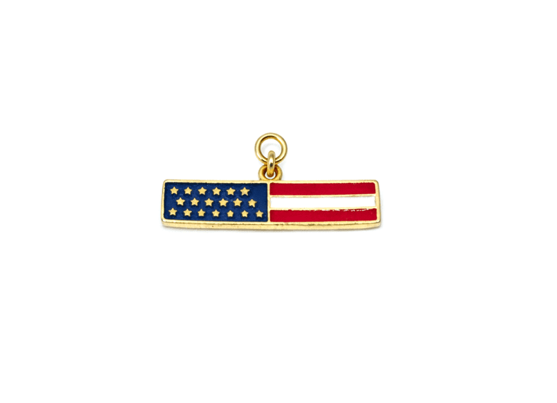 Pair this design with our Waving American Flag Charm, United States Flag Map Charm, Sparkling Rhinestone American Flag Charm, and Patriotic Shield Charm to create a complete USA patriotic charm series.